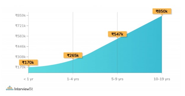 Here is the graph showing the developer salary with an increase in the experience.
