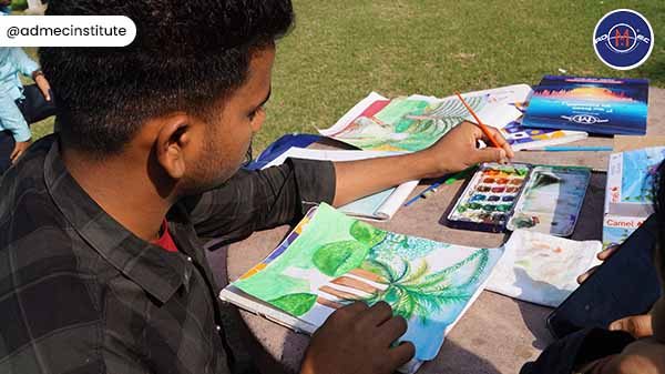 ADMEC Multimedia Institute organizes outdoor art and sketching sessions every year to encourage students to learn human anatomy, perspective, still life, light and shadow, etc. The study of these important topics helps students improve their overall design sense. Industry demands for the creative minds not the DTP operators thus, these types of sessions are like the creativity boosters for students and become a must-attend.