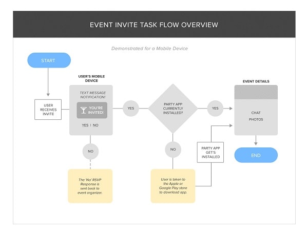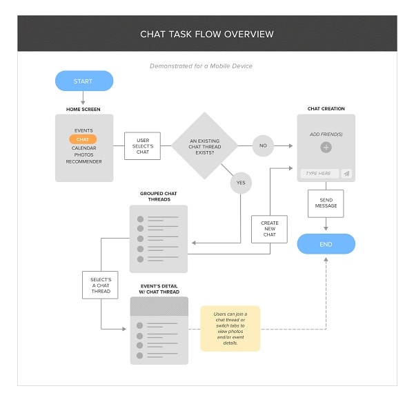 When we start making the user interface-flow diagram, the boxes represent major user interface elements i.e. instances/objects and the arrows represent the possible flow between them.