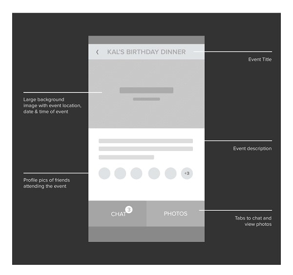 Wireframe should show: