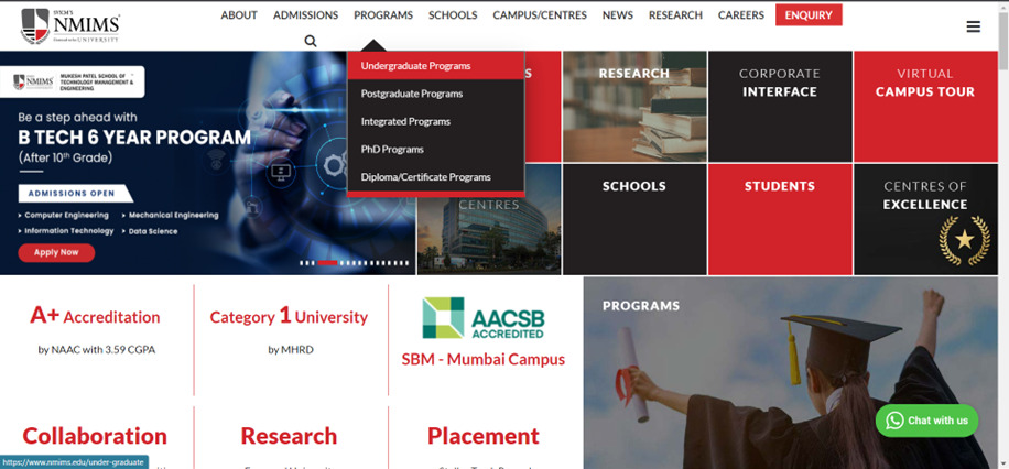 For example, while visiting NMIMS website, the navigation bar shows the header section where all the menus are present.